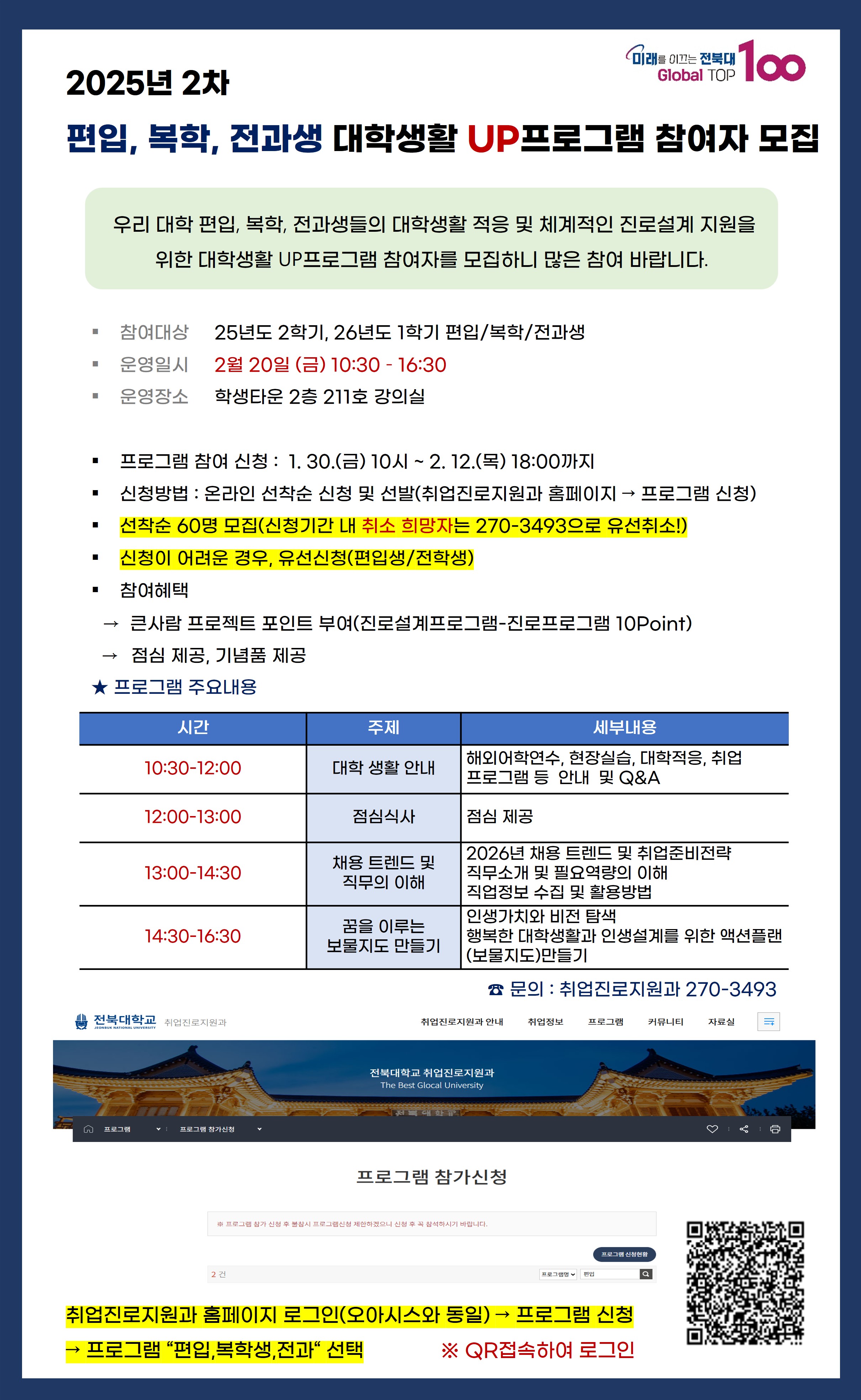 2025학년도 2차 [편입.복학.전과생 대학생활 UP프로그램] 안내